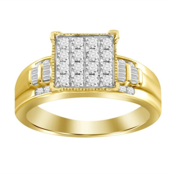 LADIES RING 0.50CT ROUND/BAGUETTE DIAMOND 10K YELLOW GOLD