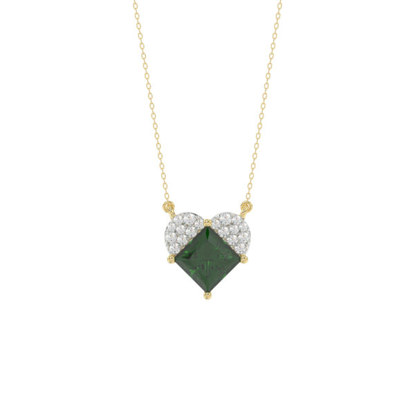 LADIES PENDANT 1.45CT ROUND/GREEN EMERALD PRINCESS DIAMOND 14K YELLOW GOLD (GREEN EMERALD PRINCESS 1.32CT)