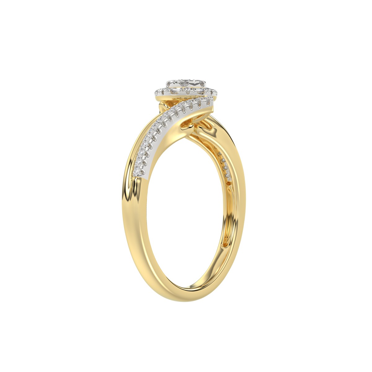Elegant 10K Yellow Gold 0.20CT Round & Baguette Diamond Halo Ring For Women