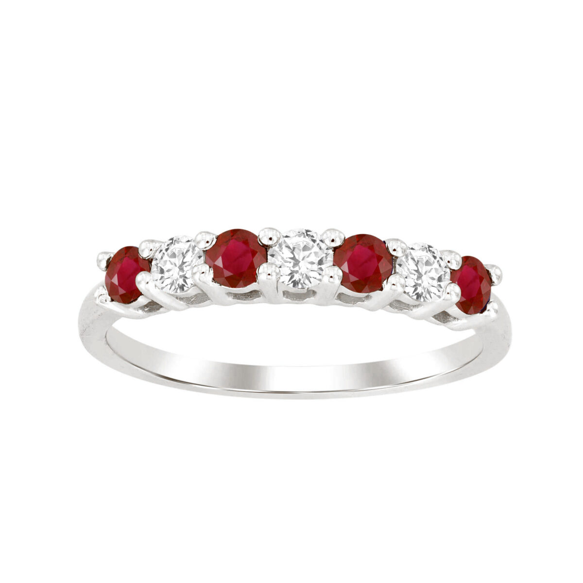 LADIES BAND 0.65CT RUBY/ROUND DIAMOND 14K WHITE GOLD