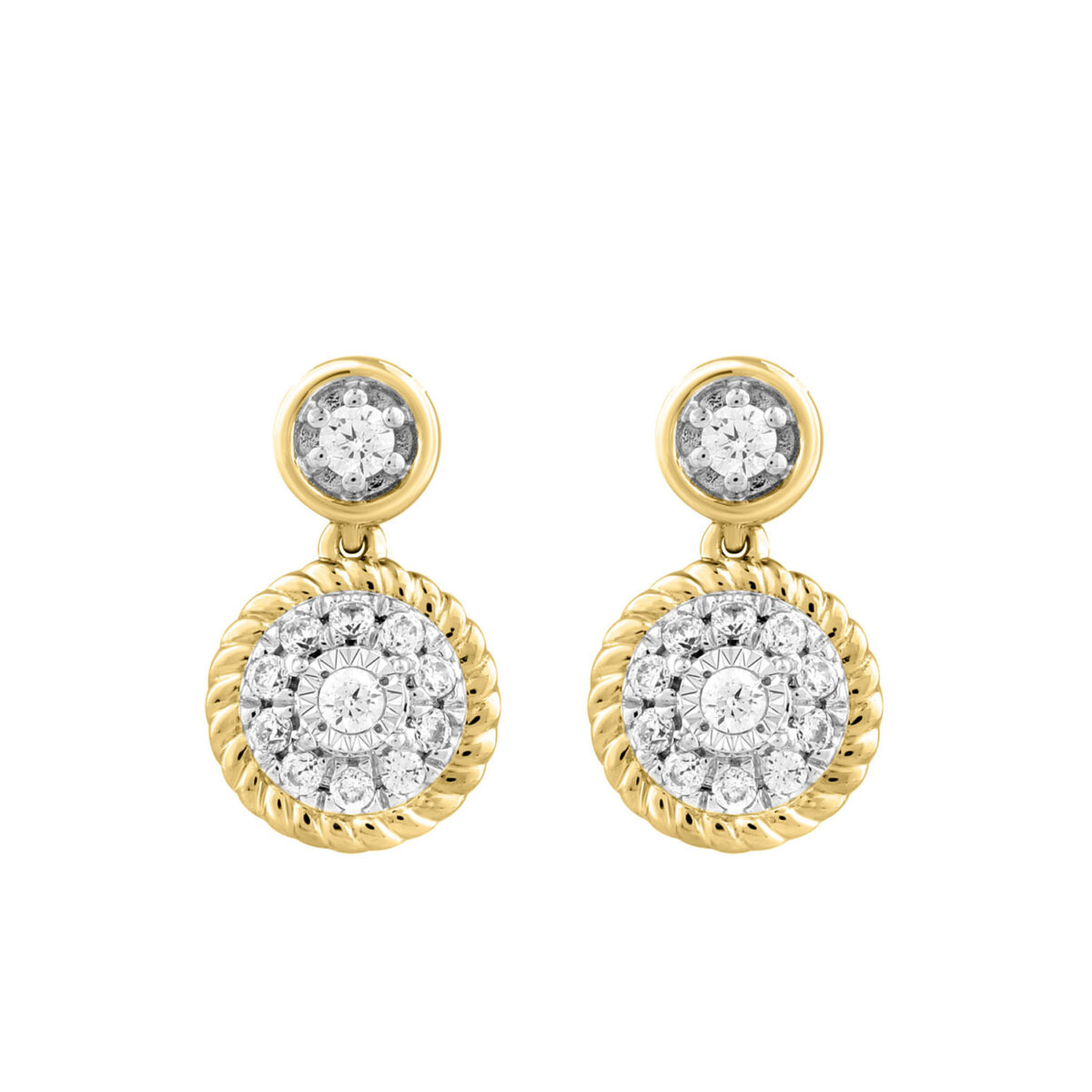LADIES EARRINGS 0.13CT ROUND DIAMOND 14K YELLOW GOLD