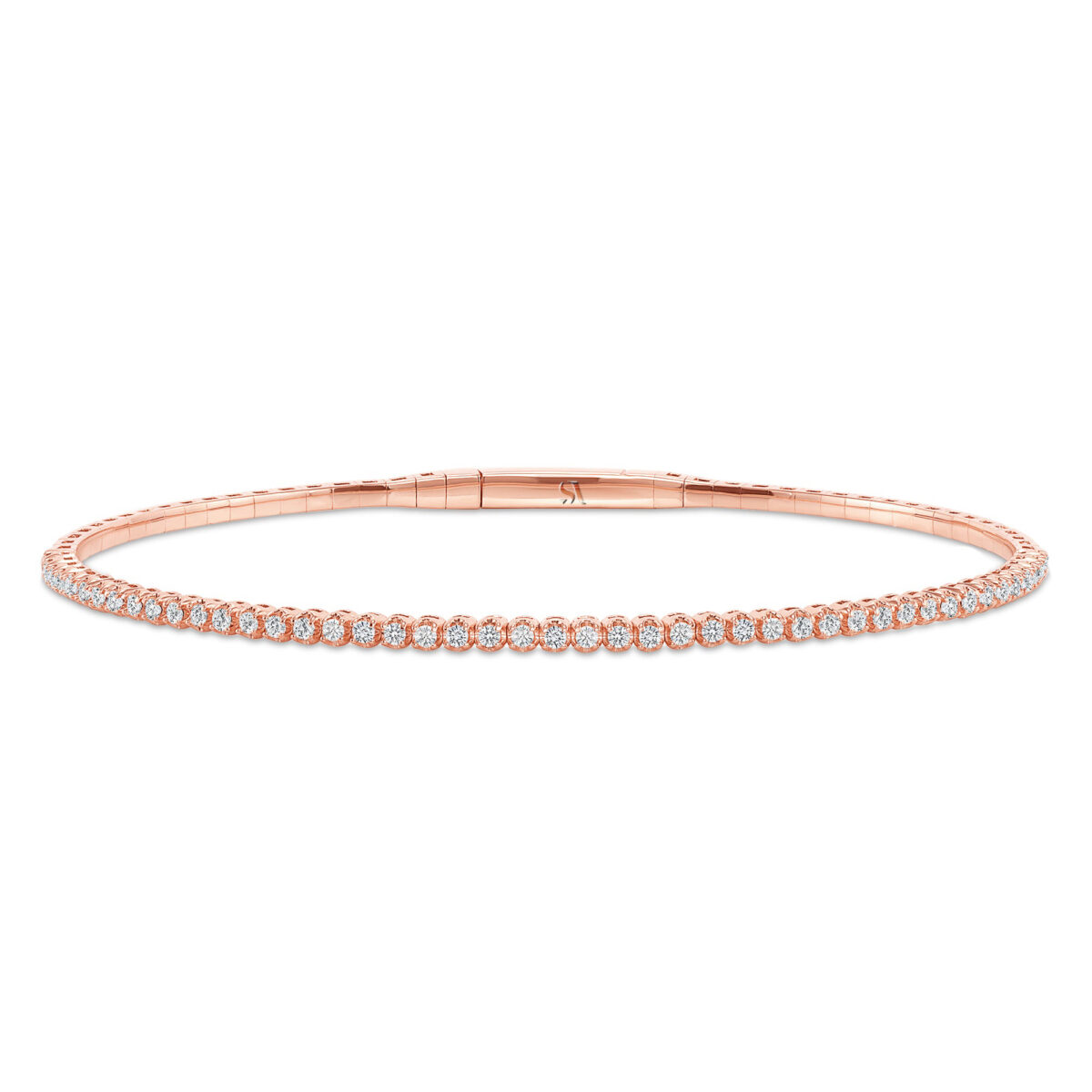 LADIES HALF FLEXIBLE BANGLE 1.00CT ROUND DIAMOND 14K ROSE GOLD