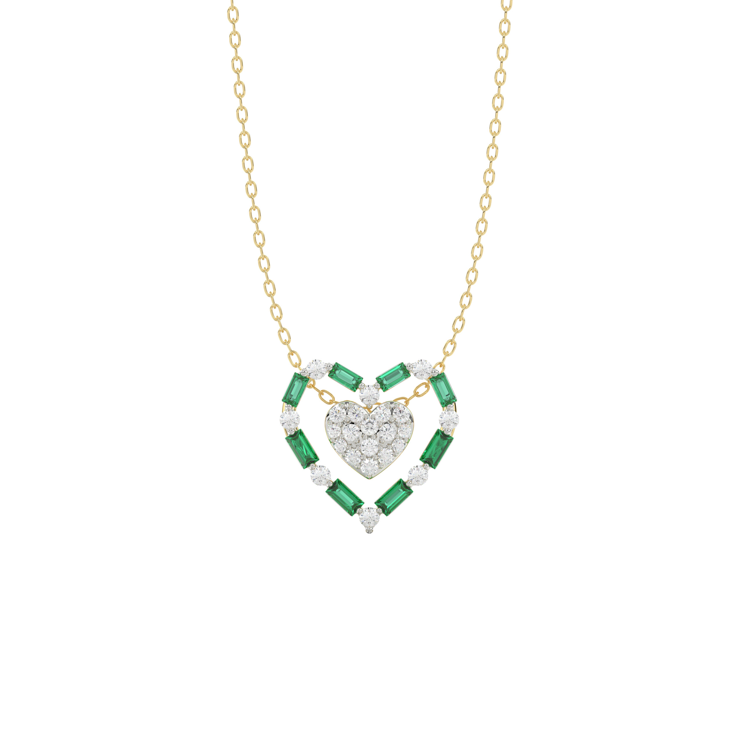 LADIES PENDANT 0.35CT ROUND/GREEN EMERALD BAGUETTE DIAMOND 14K YELLOW GOLD