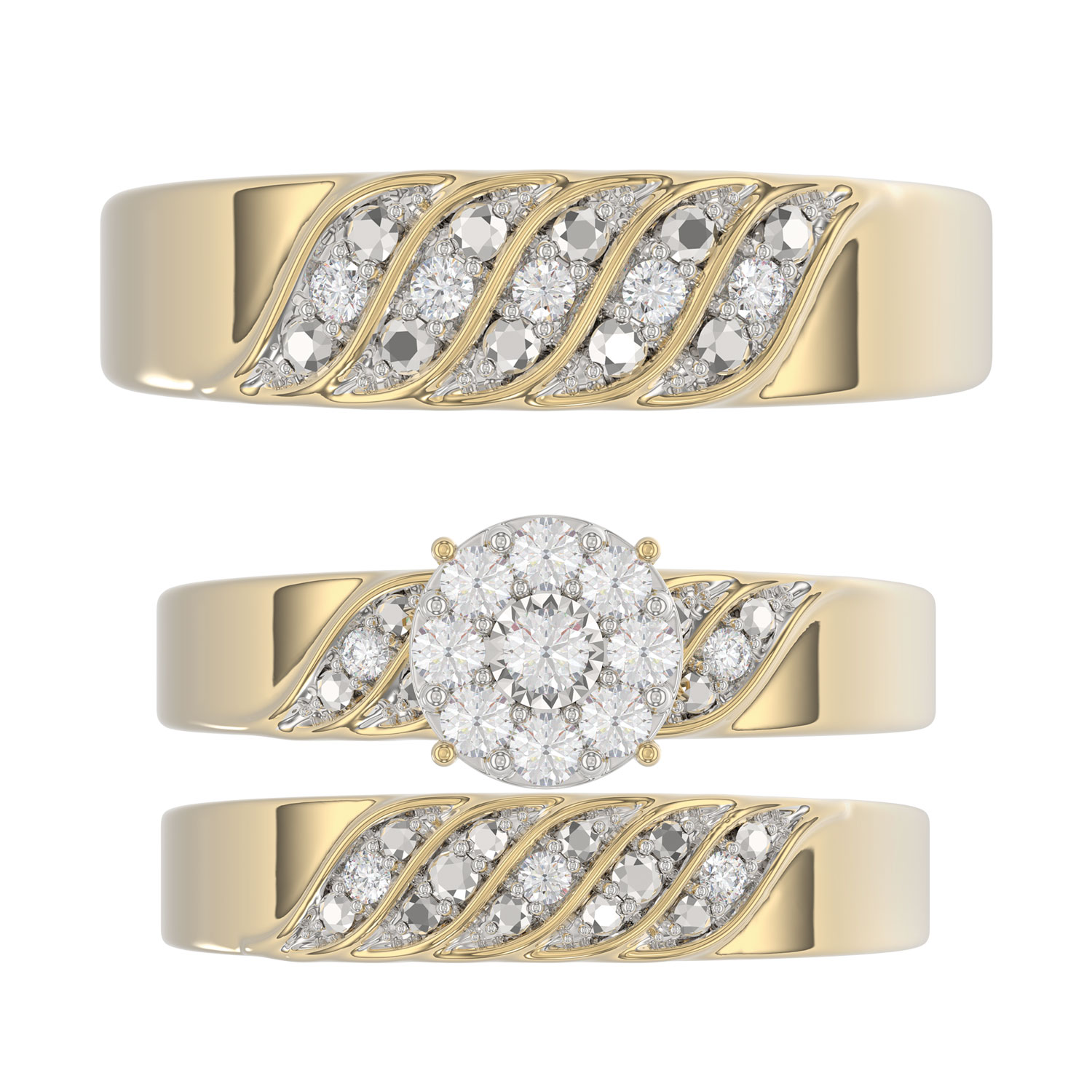 LADIES TRIOS SET 0.33CT ROUND DIAMOND 10K YELLOW GOLD
