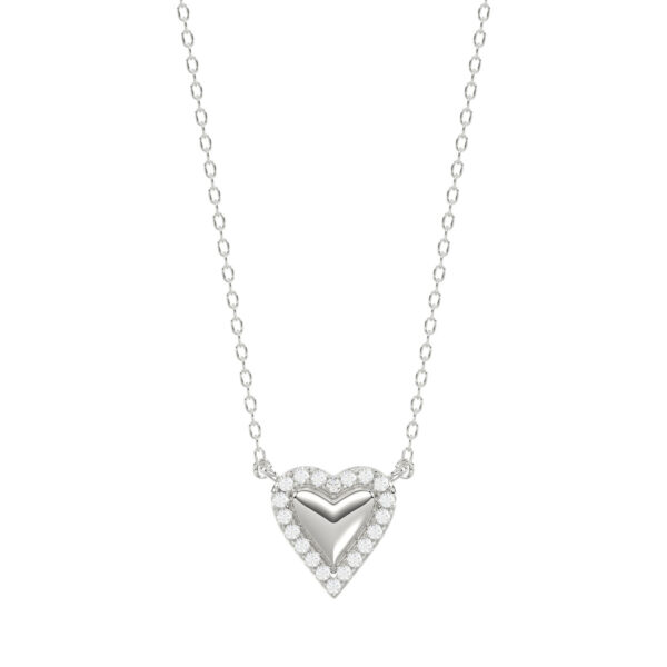 Round Diamond Heart Necklace, 0.10Ct Sterling Silver Love Necklace, Minimal Heart Charm Pendant For Your Loved One, Girlfriend Gift