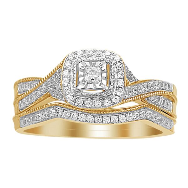 LADIES BRIDAL SET 0.25CT ROUND/BAGUETTE DIAMOND 10K YELLOW GOLD