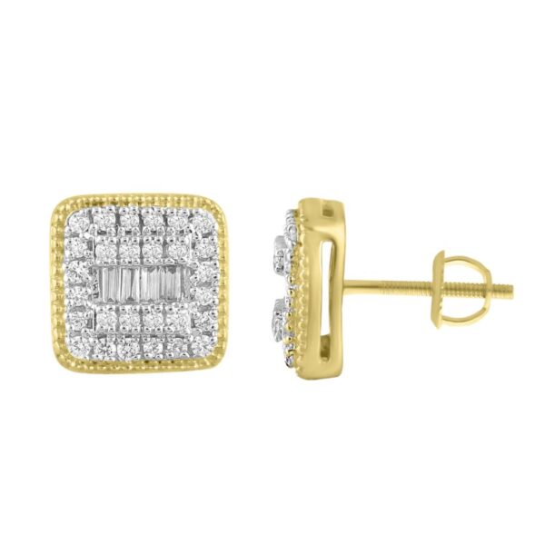 LADIES EARRINGS 0.25CT ROUND/BAGUETTE DIAMOND 10K YELLOW GOLD