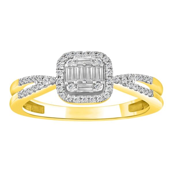 LADIES RING 0.33CT ROUND/BAGUETTE DIAMOND 10K YELLOW GOLD