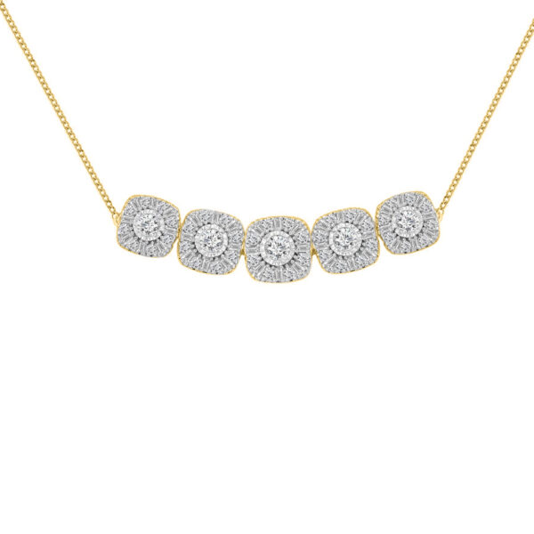 LADIES NECKLACE 1.00CT ROUND/BAGUETTE DIAMOND 14K YELLOW GOLD