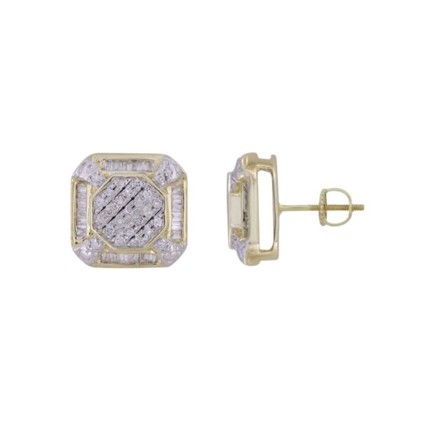 LADIES STUD EARRINGS 0.50CT ROUND/BAGUETTE DIAMOND 10K YELLOW GOLD