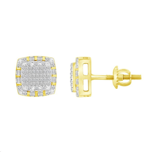 LADIES EARRINGS 0.50CT ROUND/BAGUETTE DIAMOND 10K YELLOW GOLD