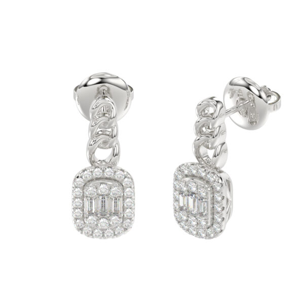 LADIES EARRINGS 0.50CT ROUND/BAGUETTE DIAMOND 14K WHITE GOLD